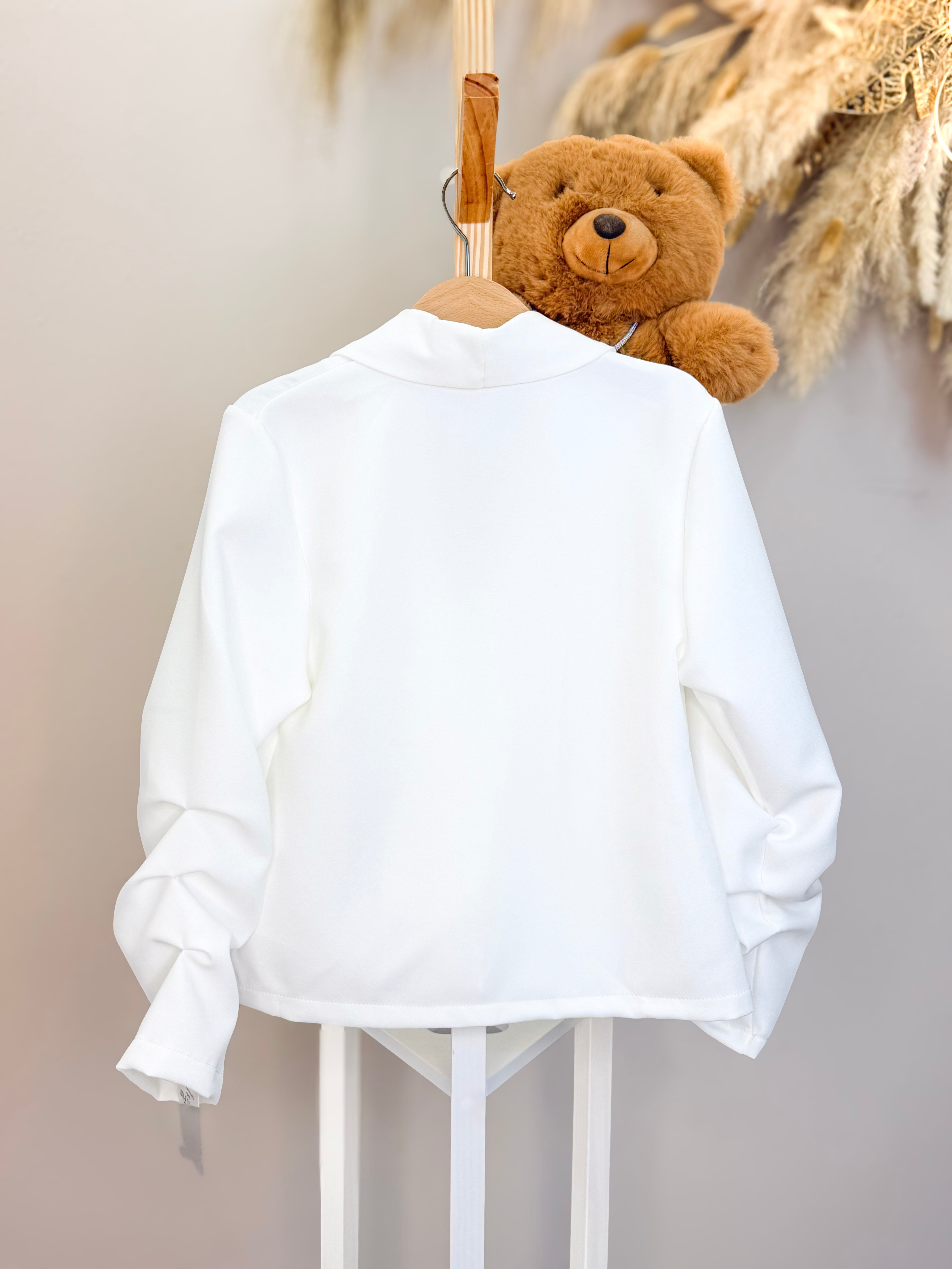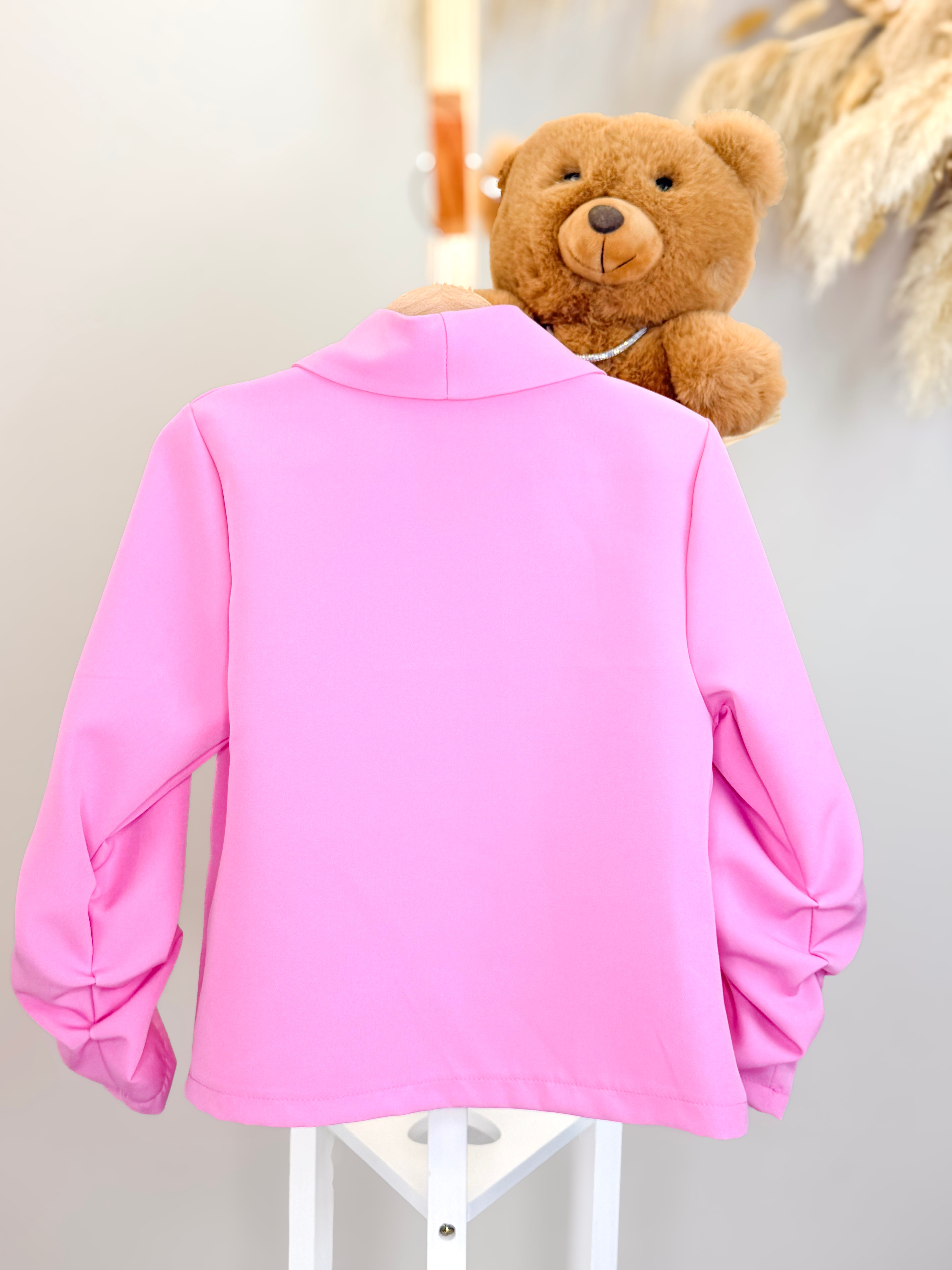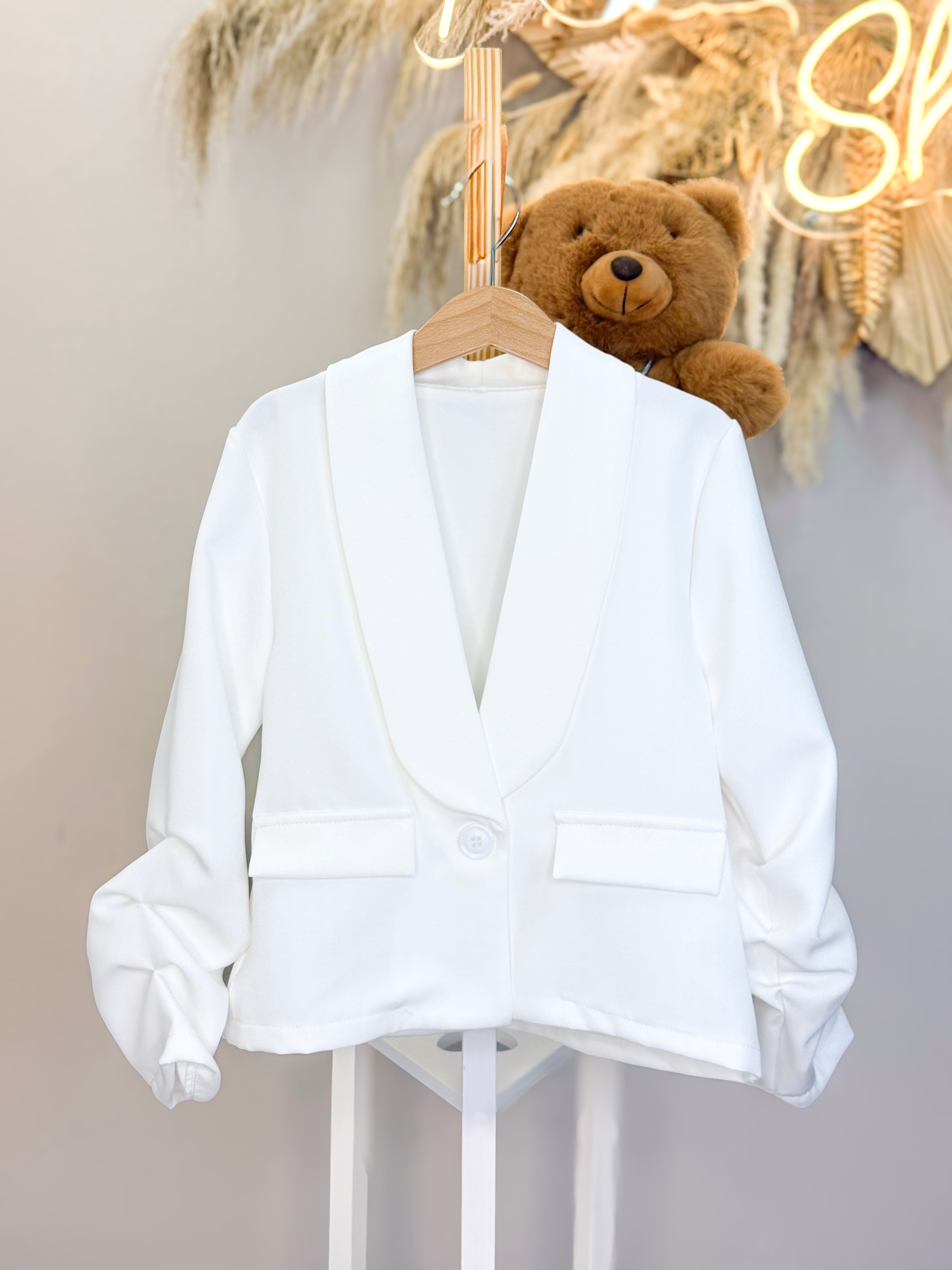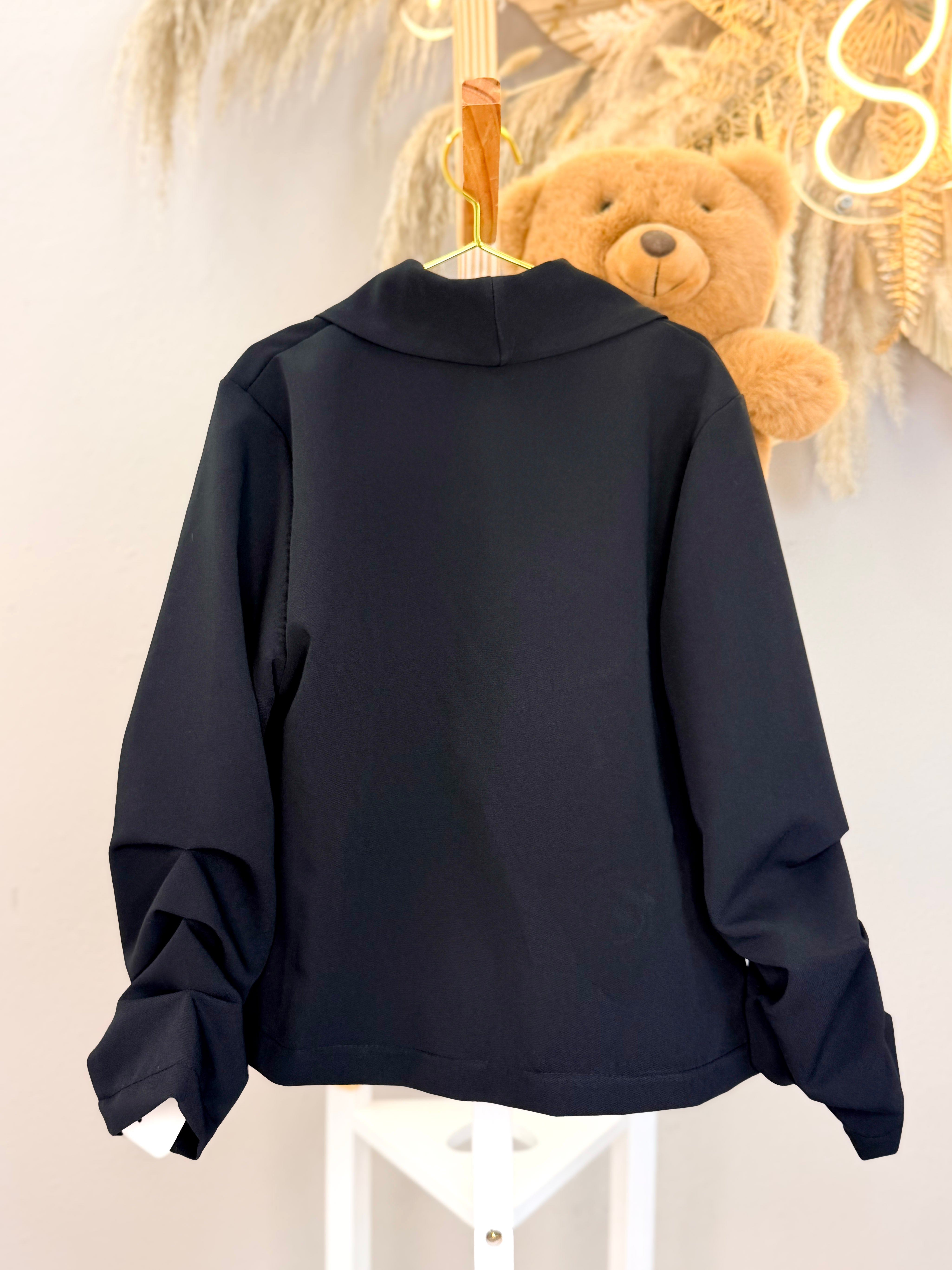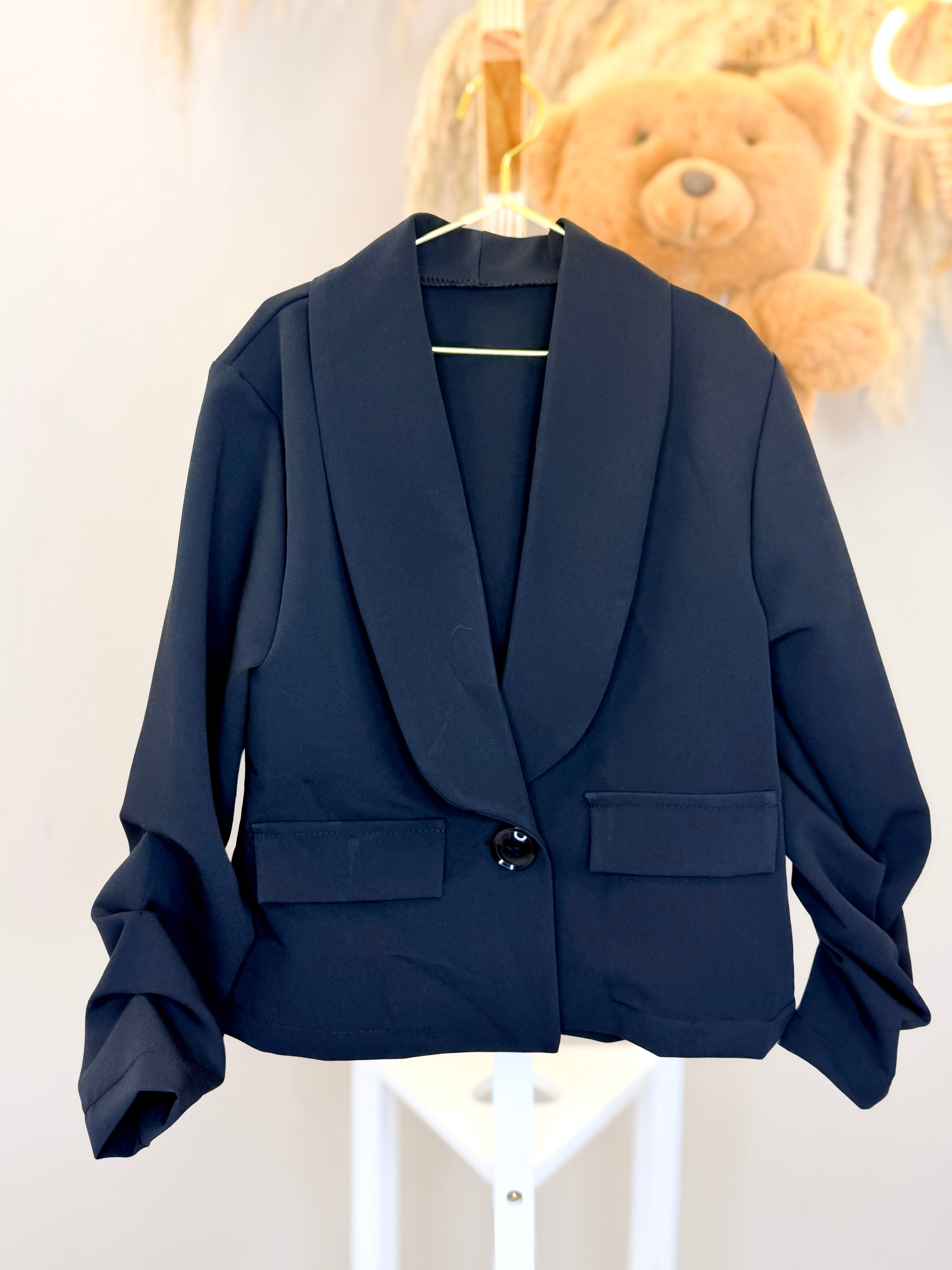 Blazer elegante caratterizzato da dettagli sofisticati sulle maniche con grinze che aggiungono movimento e dinamicità al capo. Chiusura con bottoncino singolo per un look raffinato e versatile. Perfetto per creare outfit sia casual che più formali, questo blazer si distingue per i suoi particolari ricercati che lo rendono un pezzo unico nella tua collezione. Ideale per chi ricerca stile e originalità.