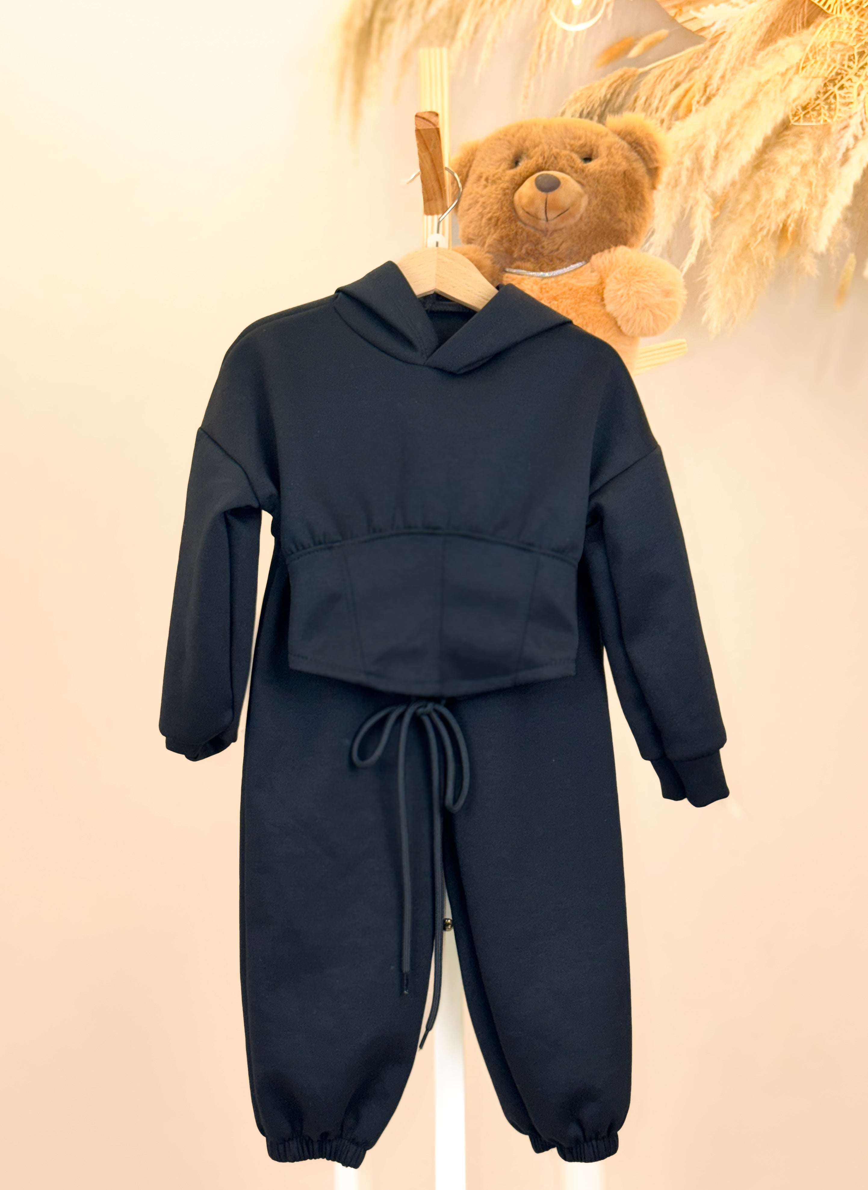 Tuta con felpa modello bustier e pantalone con elastico caviglia